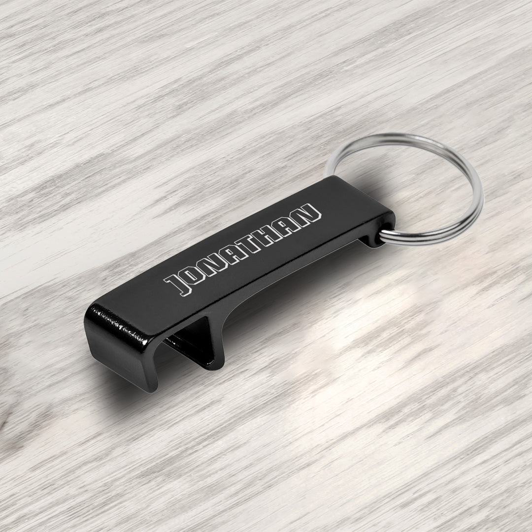 - functions as a keyholder, a bottle opener, a beverage can tab lifter and a phone stand