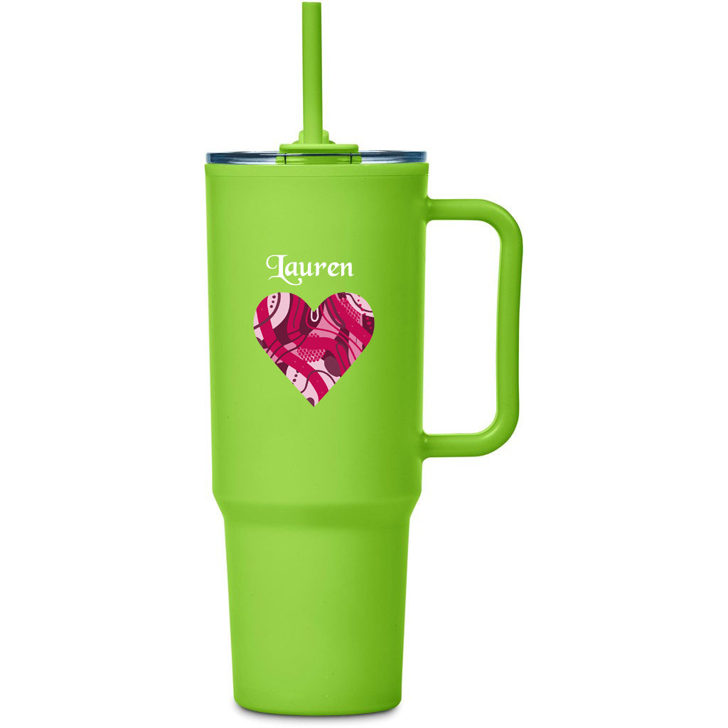 The generous size of this mug makes it ideal for staying hydrated with fewer refills. Use the straw for cold drinks or sip directly from the lid for hot beverages. Made from BPA-free plastic with double-wall insulation, it keeps your drinks hot or cold for longer than regular mugs. The ergonomic handle ensures a comfortable grip, and the base is designed to fit securely in most car cup holders, making it perfect for on-the-go hydration.